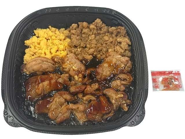 甘辛いタレを絡めた豚焼肉と玉ねぎ炒めにピリ辛の唐辛子マヨネーズをかけ、トマトソース和えスパゲティを組み合わせた食べ応えのあるお弁当です カロリー:693kcal 【販売地域】北海道