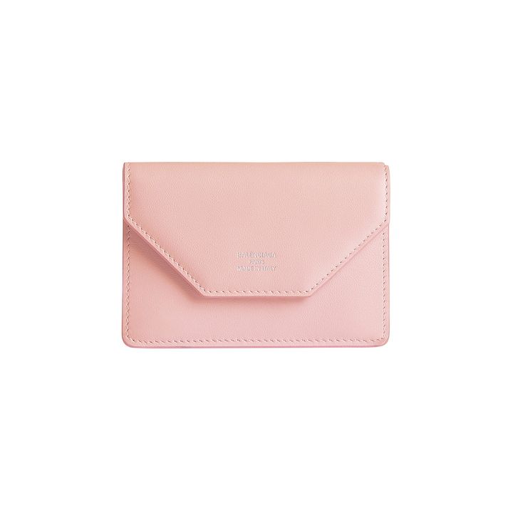 封筒型のフラップがモダン&スタイリッシュな三つ折りタイプのミニ財布。フェミニン&スイートなペタルピンクが狙い目。