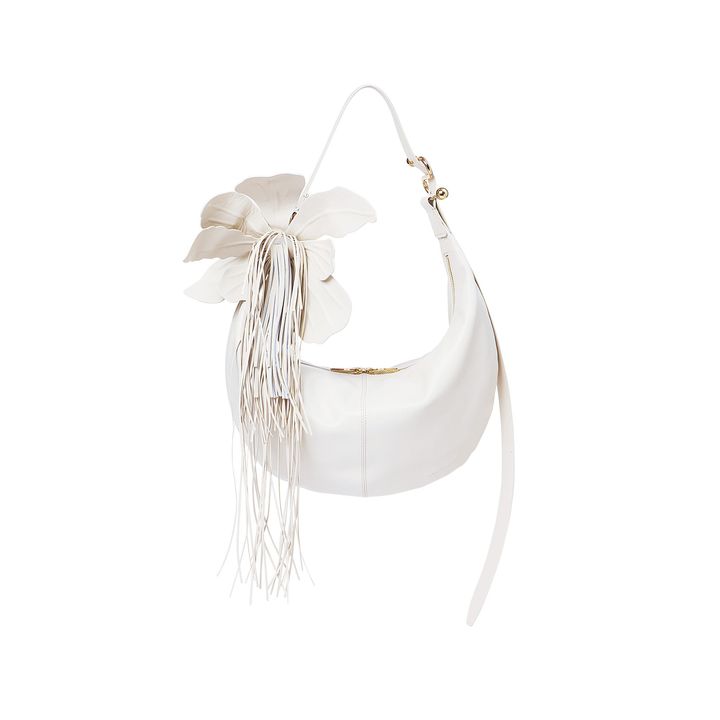 レザーのマットな風合いが映える、モードなフラワーモチーフ。ランダムに開いた花びらなど、立体的なルックスに一目ぼれ。