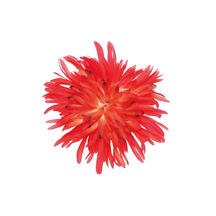 鮮烈なレッドのフラワーが、装いに高揚感をプラス。パワフルなエネルギーも感じて。