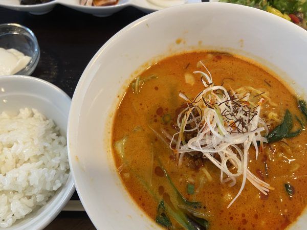 タンタンメンは胡麻と様々な香辛料が香ばしく、文句なく美味しい!しっかりした味付けなので白いご飯があるのが嬉しいです。