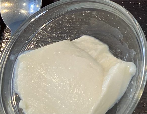 満腹になってもデザートは食べます。杏仁豆腐はお腹いっぱいの後にちょうどいいサイズ。全て食べ尽くし満腹で幸せ。