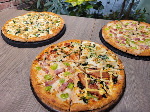 「あさりと桜えびの春クワトロ」は、旬のおいしさが詰まった「あさりと菜の花のホワイトソース(北海道産ホワイトソース使用)」と「パンチェッタとそら豆の桜えびソース(駿河湾産桜えびソース使用)」に、王道の「マルゲリータ」と「炭火焼チキテリ」を加えた、老若男女が楽しめる1枚。