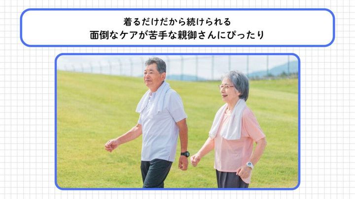 着るだけで血行促進や疲労回復をサポートしてくれるこのウェアは、自分用はもちろん、高齢の親御さんへのプレゼントとしても人気が高まっていますよ。