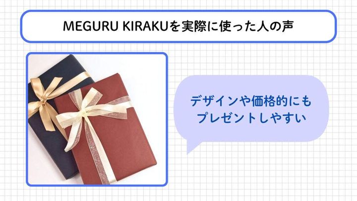 MEGURU KIRAKUの口コミで非常に目立つのが、「親へのプレゼントとして購入した」という声の多さです。