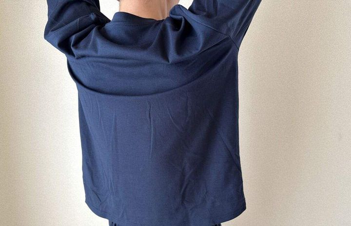 アームホールにゆとりを持たせた設計なので、通常のウェアよりもやや身幅にゆとりがあるのが特徴ですね。