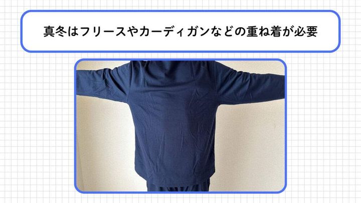 全体的にリラックスシルエットを採用しているため、身体を締め付ける感覚がなく、就寝時もストレスフリーで着用できます。