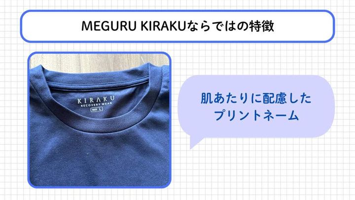 MEGURU KIRAKUは首回りのタグをプリント式にするなど、肌への刺激を最小限に抑える工夫がされています。