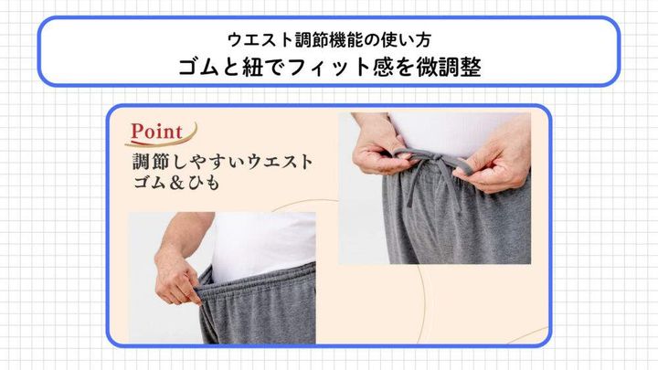 ウエスト調節機能の使い方|ゴムと紐でフィット感を微調整