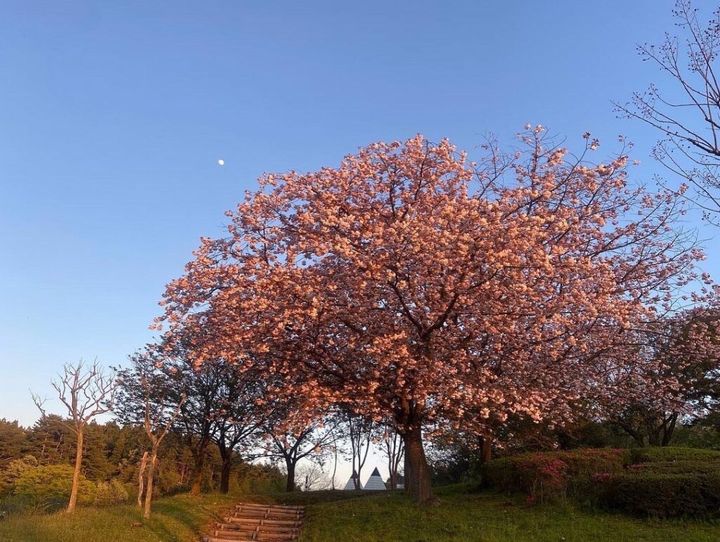 広々とした公園の中をじっくりと歩き回ったあと、丘の上に座って桜を眺めた。心は不思議なくらい静かだった。夕日があたりをオレンジに染めてゆく。
