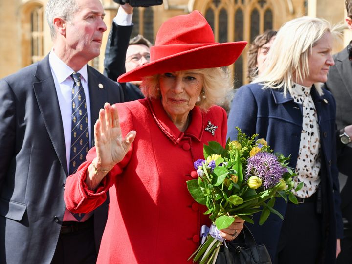 イースターサンデーの4月5日、カミラ王妃は朝早くから「サンデー・ベスト(イースター用の晴れ着)」に身を包み、ウィンザー城に到着した。王妃はフィオナ クレア(FIONA CLARE)による鮮やかな赤のウールクレープのドレスに「ラズベリー・ピップ」として知られるブローチを添え、フィリップ トレイシー(PHILIP TREACEY)の同色の帽子、そしてディオール(DIOR)によるレザーのトートバッグがルックを完成させていた。