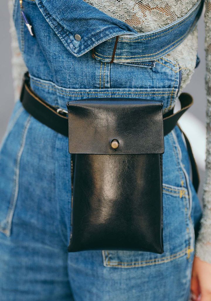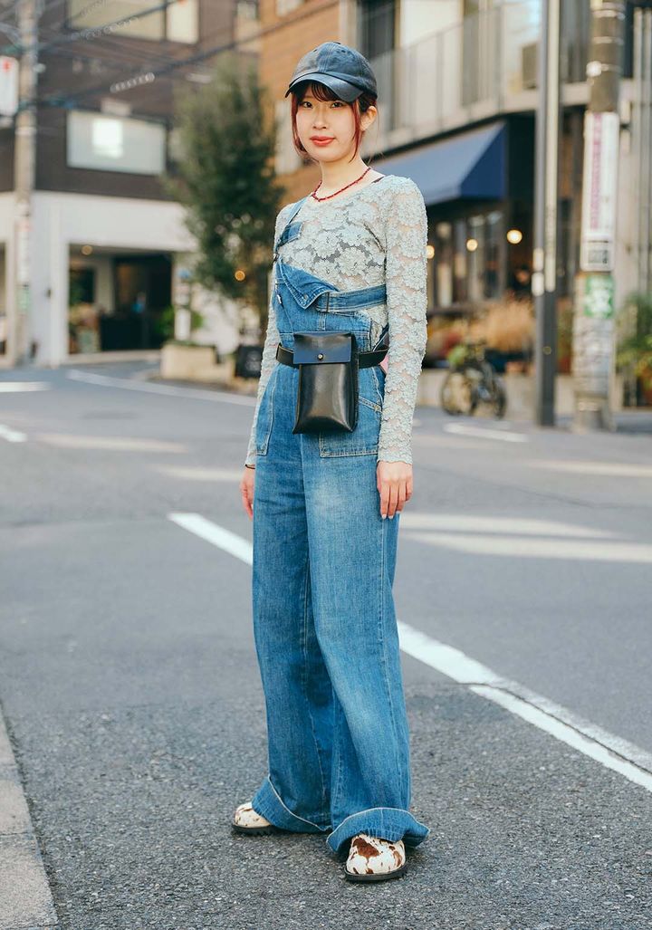 トップス、オーバーオール、キャップ/以上3点すべてヴィンテージ、ネックレス/●●●●●、ベルト/ソシテ、バッグ/ハンドメイド、シューズ/ラインヴァンド