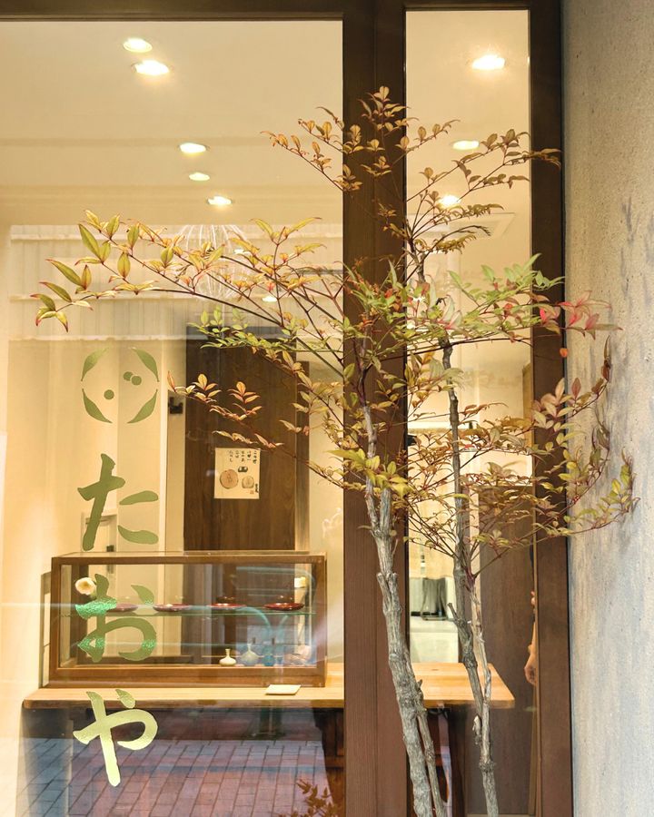 パッケージや内装には、かつての「うさぎや」を感じさせる要素が随所に。「たおや」のロゴは、南天の木をモチーフにしたデザイン。もともと「うさぎや」にあった南天の木を込山さんが受け継ぎ、現在は店舗の外に植えられている。デザインを手がけたのは、込山さんの夫であるデザイナー。さらに、「どら焼き」を並べる番重には、中屋さんが当時「うさぎや」から譲り受けたものを使用するなど、記憶が息づく。