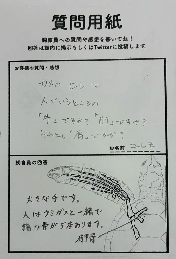 同施設には、飼育員への質問を募る『質問用紙』が設置されており、ユニークなやり取りがたびたび話題を呼んでいます。