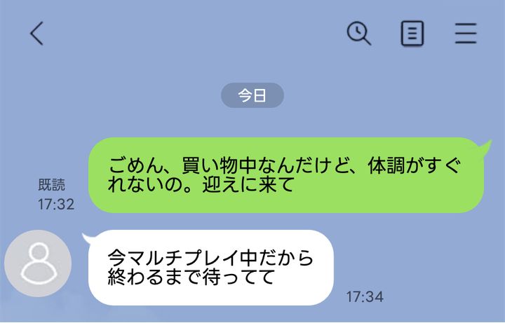 「体調がすぐれないの」買い物先で夫にメッセージ。心配してくれると思った夫の返信内容に、思わずドン引き