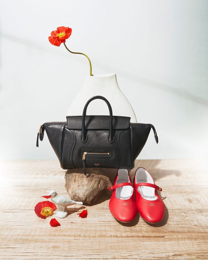 バッグ“リトル ラゲージ”¥517,000[W24×H15.5×D11] 靴 “バレリーナ”[H0.5]¥143,000[2点共参考価格](2点共セリーヌ/セリーヌ ジャパン tel.03-5414-1401)
