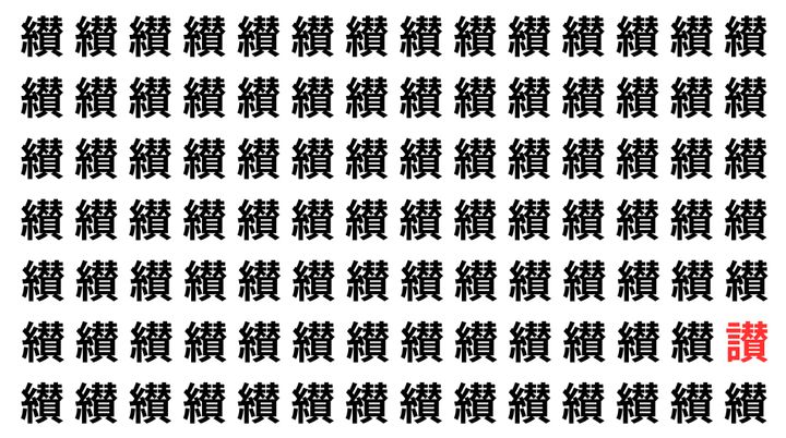 たくさんの「纉」の中に、よく似た別の漢字が1文字だけ隠れています。