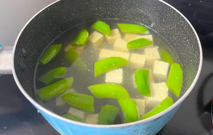 2. 【調理時間10分】スナップエンドウと豆腐を入れた味噌汁の作り方