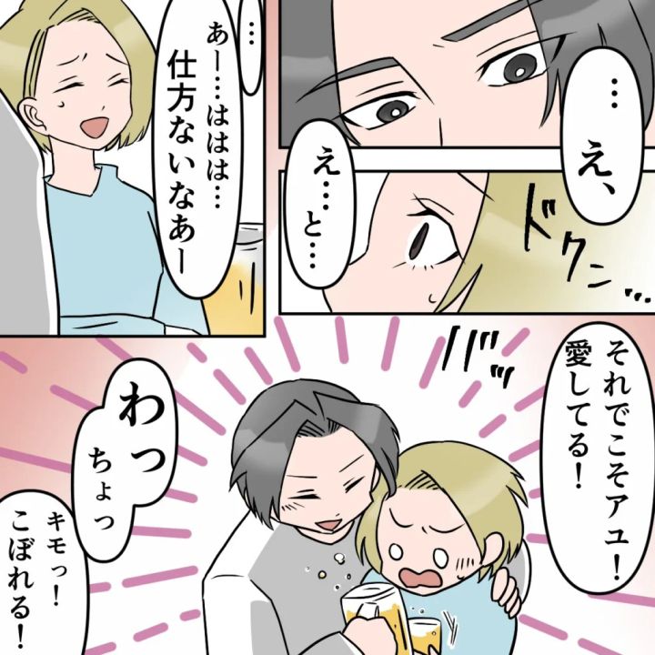 タクマさんのこんなに真剣な表情を見るのは初めてでした。私は思わず「ははは・・・仕方ないなぁ」と返事をしてしまいます。タクマさんのことが好きな私。だけど好きな人からこれほど真剣に頼まれてしまったら断りきれませんでした。私の言葉を聞いたタクマさんは満足そうに笑うと、「それでこそアユ!愛してる!」と言って私の肩をぐっと引き寄せました。