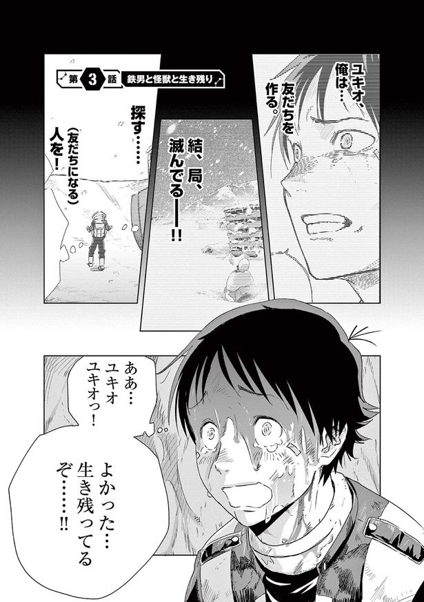人見知りで不器用な少年・鉄男。唯一の友だちは、心を通わせ、ともに戦場を駆け抜けてきた巨大ロボ・ユキオだった。宇宙から襲来する銀河怪獣に立ち向かい、“救世主”として戦場に立った鉄男は、壮絶な最終決戦の末、10年ぶりに地球に帰還する。しかし、そこは全土が雪と氷に覆われ、死の世界となった凍結地球〈スノウボールアース〉に変わり果てていた。この星にいったい何が起きたのか。そして、鉄男はユキオと交わした約束を果たすことができるのか――? 喪失と希望が交錯する衝撃の近未来SF冒険譚『スノウボールアース』をお楽しみください!