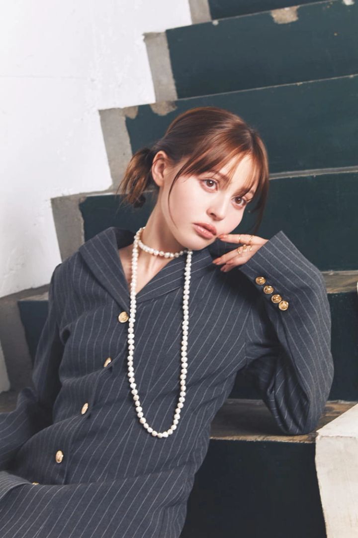 ジャケットとショートパンツのセット(バブーシュカつき)11,990円/SLY(バロックジャパンリミテッド)ネックレス 28,600円/グリン(ビームス)リング(6個セット)2,090円/GOLDY