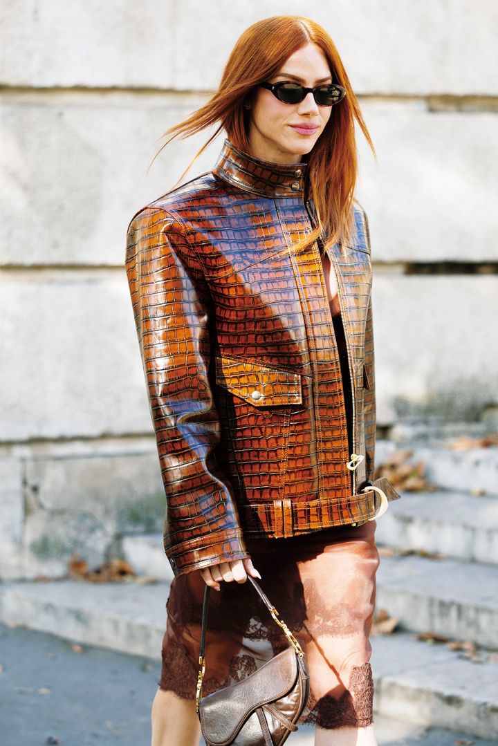 毛先にたっぷりのレイヤーを入れ軽やかに。重厚感のあるアウターとの差が秀逸。