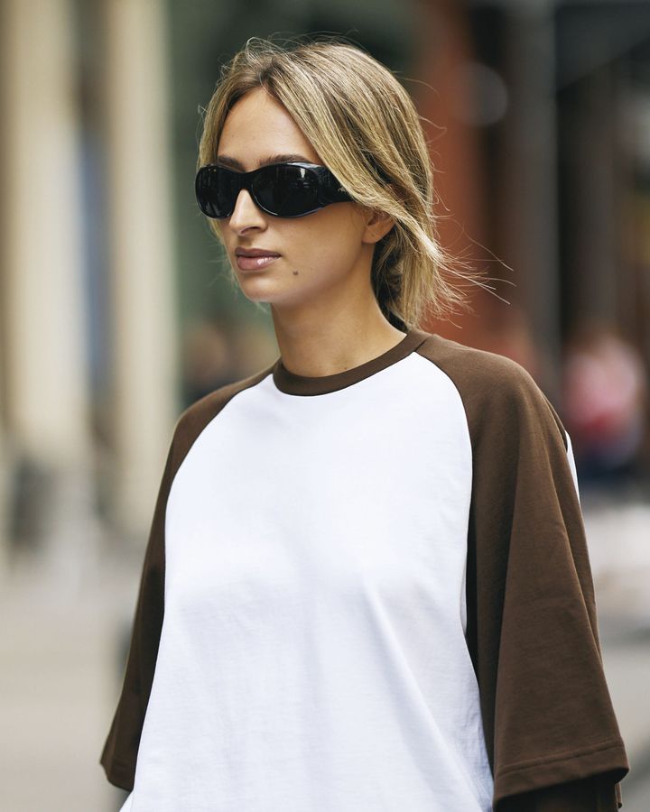 襟足にかけてのゆるやかな動きとレイヤーを入れることで、ラグランTのカジュアルなムードがマッチ。