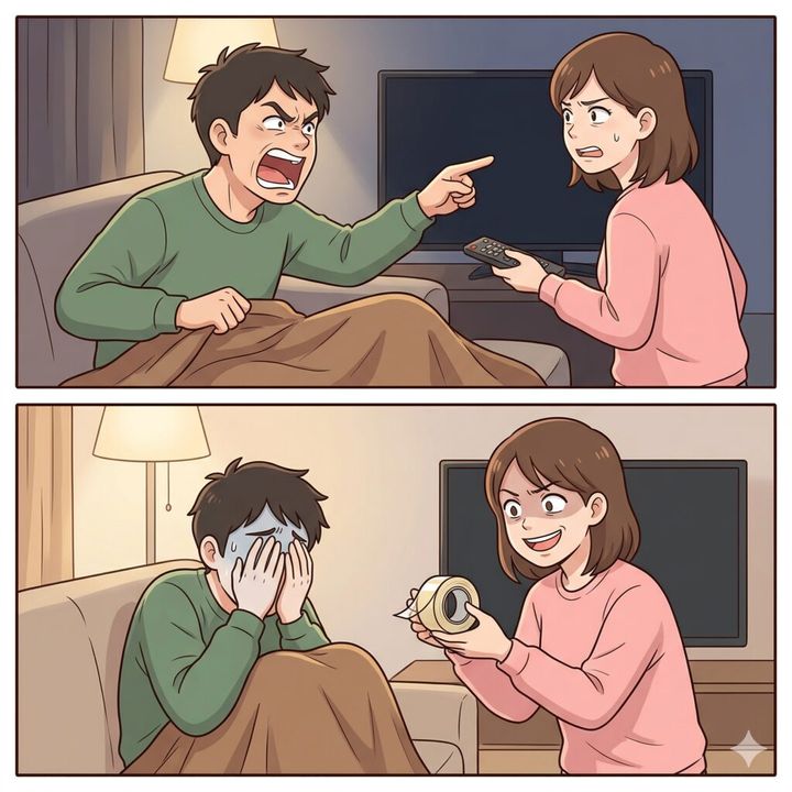 3. テレビつけっぱなしで寝落ちする夫。消そうとすると「今見てたのに!」と怒鳴るので仕返しをした