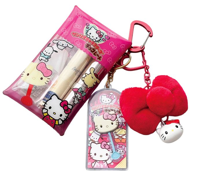 毎日持ち歩くケアコスメは、大好きなハローキティのポーチ&チャームを重ねづけ。スタメンリップには、たくさん探したハローキティ&マイメロディのチャームを