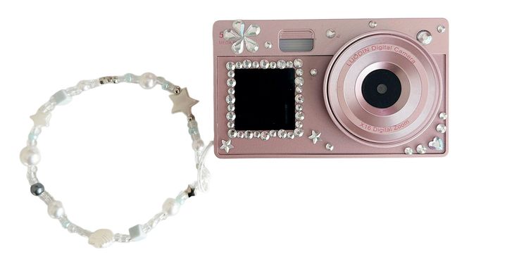 ギフトでいただいたカメラに付属していたラインストーン&チャームで、可愛く頑張りました!