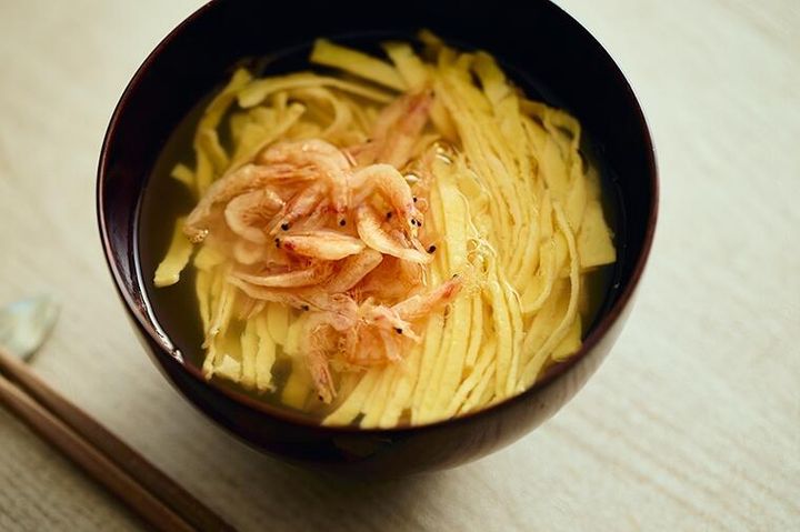 3. 芳醇なだしを吸った錦糸卵と、春風を運ぶ桜海老の香り。「錦糸卵と桜海老のお吸い物」/4月6日の『たまごスープ日めくりカレンダー』