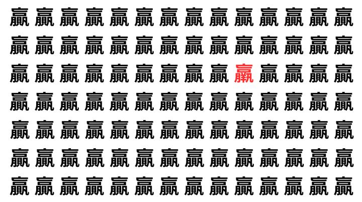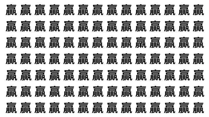 たくさんの「贏」の中に、よく似た別の漢字が1文字だけ隠れています。