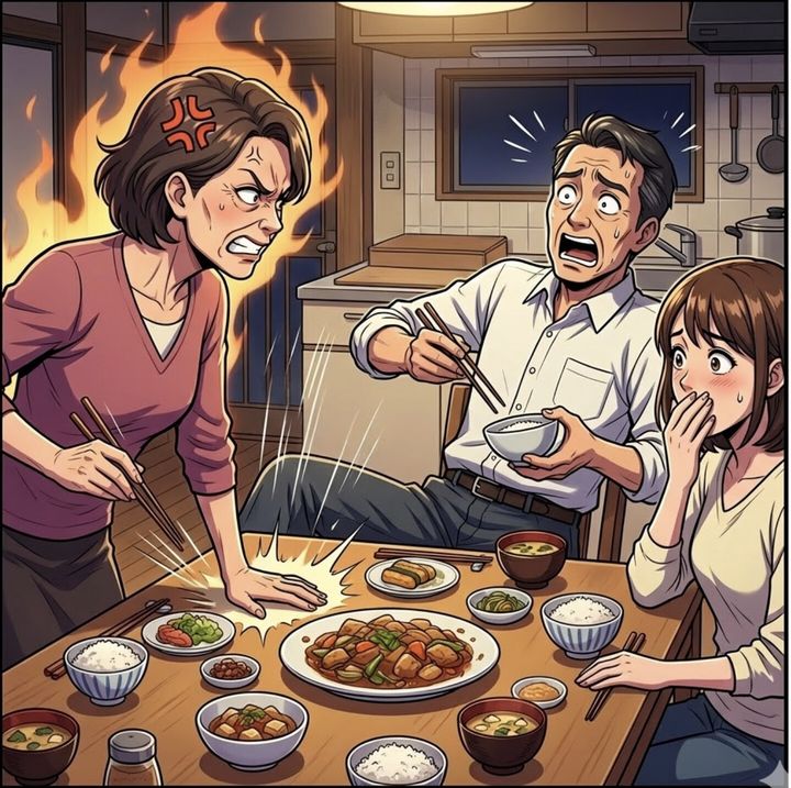 いつもは怒ることのない母の、地を這うような冷ややかな声。ダイニングの空気が一瞬にして凍りつきました。