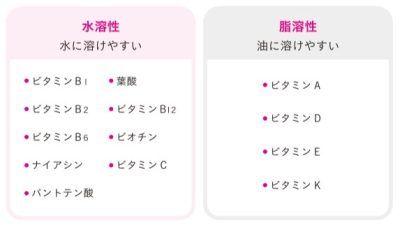 なかでも、子どもに不足しがちなのはビタミンDです。ビタミンは大きく分けて「脂溶性」と「水溶性」の2種類があり、それぞれに特徴があります。水溶性ビタミン(ビタミンB群とビタミンC)は、体内に蓄積されにくいため、毎日補う必要があります。