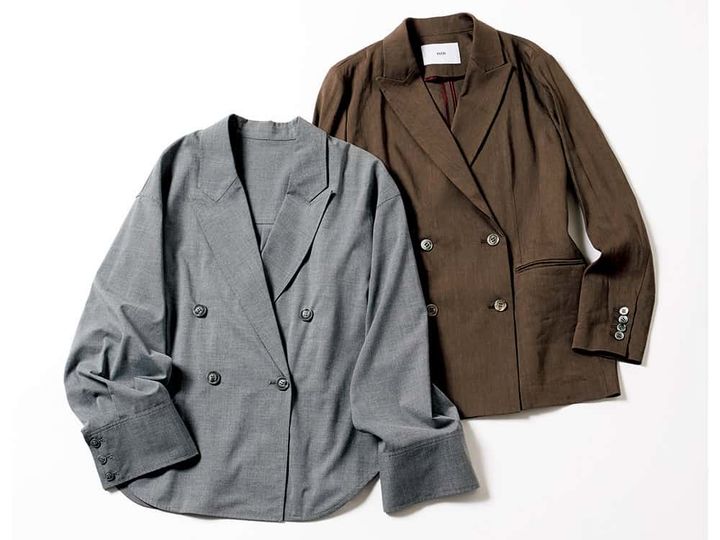 <右>ブラウンジャケット¥66,000(イネド) <左>グレージャケット¥20,900(メゾンスペシャル 青山店)