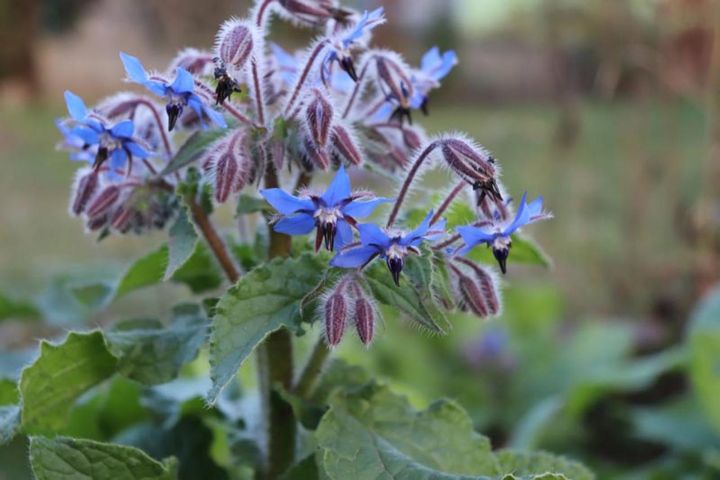 白い細毛におおわれた茎葉に、青い星形の花を咲かせます。食用できるエディブルフラワーなのでアイスキューブやお菓子に利用。タネからとれるオイルは薬用に、そばに植えるとイチゴの実つきがよくなるともいわれます。日当たりを好むので、風通しをよくして蒸れを防ぎましょう。