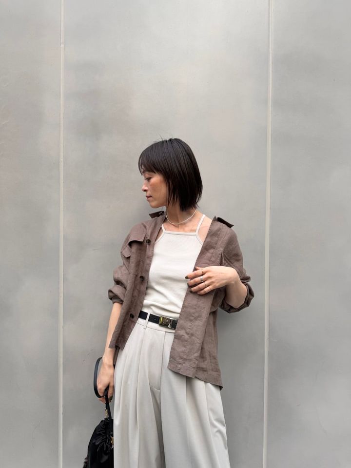 3. 【40代スナップ】「リネンシャツ」を羽織って程よく肌見せ。こなれコーデ完成!|山下咲知子さん
