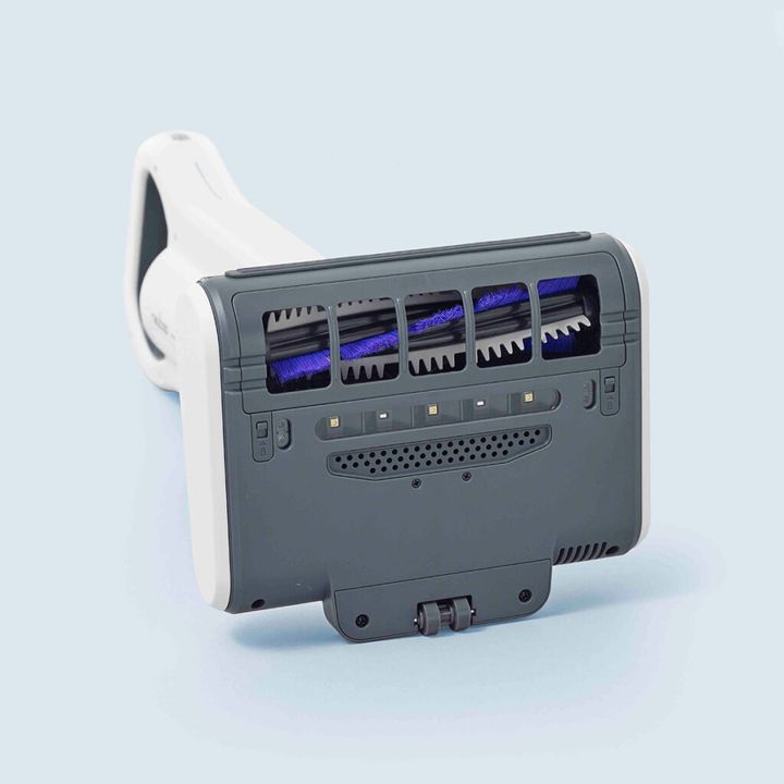 60℃の温風(ダニ対策)とUV LED(除菌機能)を搭載したコードレスのふとんクリーナー。「初回はフィルターにビッシリとついた大量の粉塵を見て『今までこれで寝ていたのか』と驚愕! 温風機能のおかげで天日干ししたかのように、サラッとフカフカになるのも実感できて、掃除のしがいがありました。ヘッドはコンパクトで、ハンドルの角度も使いながら変えられるので、取り回しがしやすく、マットレスの隙間など、隅々までしっかり届きます。コードレスで軽量だし、途中で何度か停止したり、ふとんの向きを変えたりするのに自立するのも高ポイント。収納する際もおさまりがよいです」