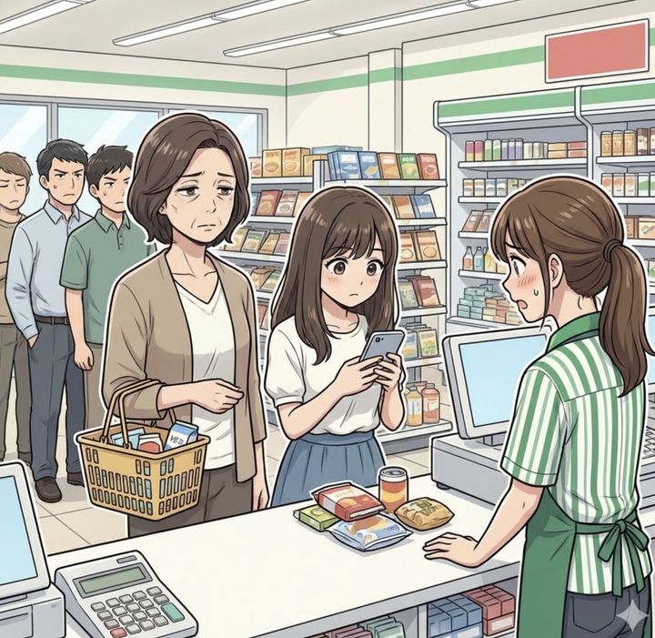 「進んでるんですけど」スマホに没頭して列を塞ぐコンビニ客。いざ会計のタイミングで放った信じられない言葉