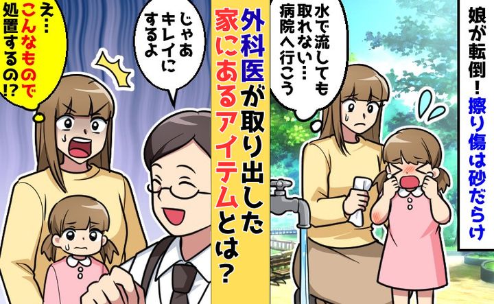 娘が転倒!擦り傷の中が砂だらけに!外科の先生が取り出した「家にあるもの」を使った処置に驚き!