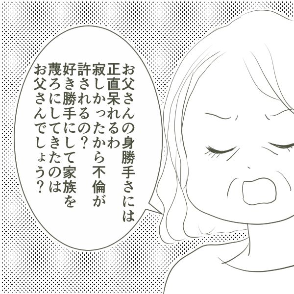 【漫画】「寂しかったから、つい」父の理不尽すぎる不倫の言い訳【父がW不倫して家庭崩壊した話 Vol.13】
