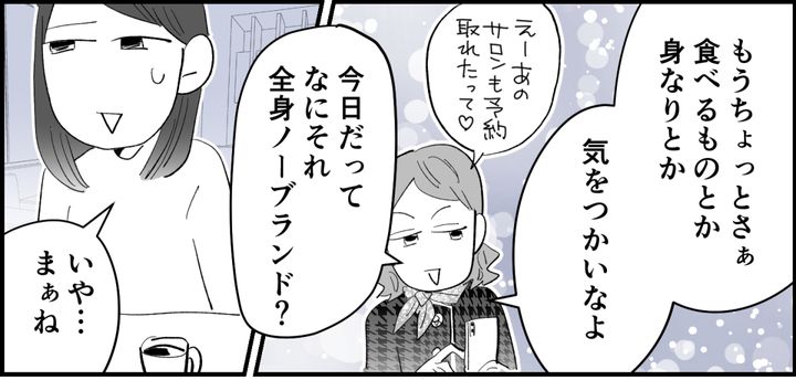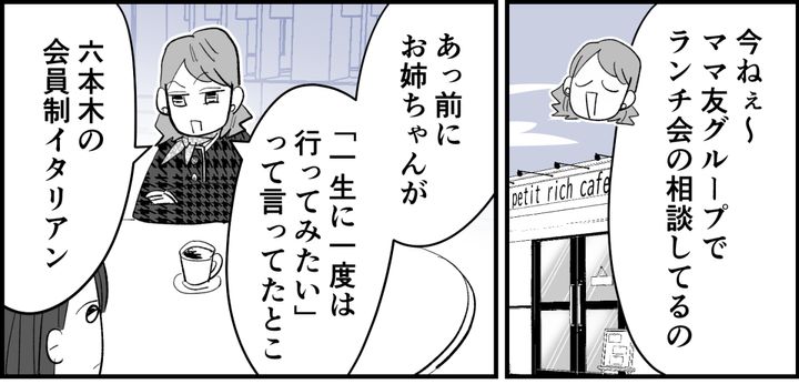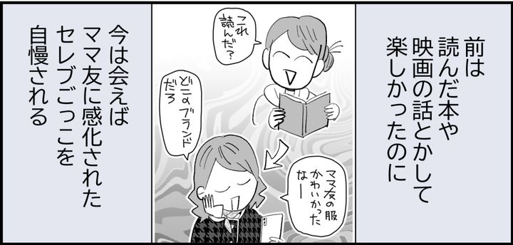 久しぶりに会ったカフェでも、アリサは終始スマホでママ友と高級レストランでのランチの相談に夢中。