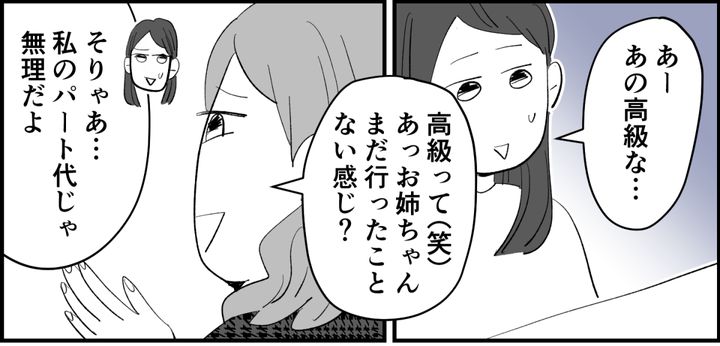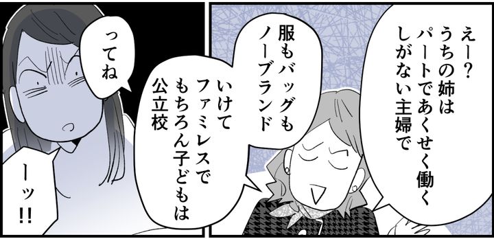 私はレナです。家族は夫と、中学生の息子がひとり。現在はパートとして働いて家計を支えています。私にはアリサという妹がいて、比較的近くに住んでいます。もともとアリサと私は自他ともに認める仲良し姉妹で、まるで友だちのような関係。大人になってもずっと変わらない仲……のはずでした。ところが最近になって、アリサの息子のトウヤくんが富裕層向けの中高一貫校へ入学。そのあたりからアリサの様子がガラリと変わってしまったのです。