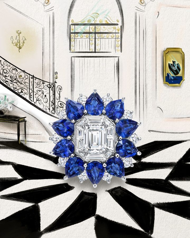 New York Collection by Harry Winston リング“718マーブルマルケトリ”[Pt×ダイヤモンド×サファイア] Hearst Owned