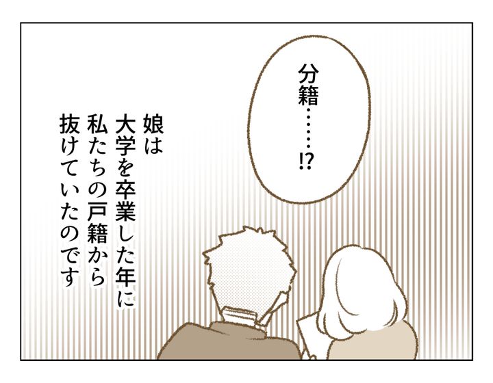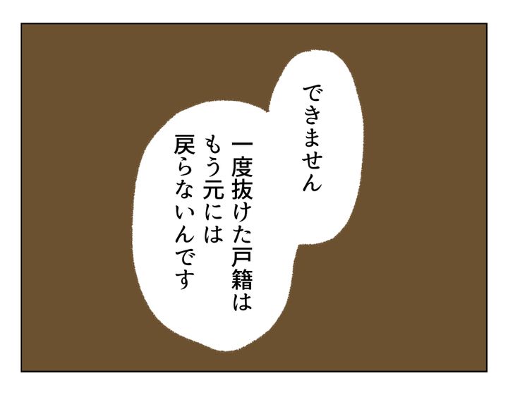 なんと、アカリさんは大学を卒業すると同時に両親の戸籍から抜けていたのですね。分籍は、成人であれば親の許可なしにすることができます。それくらい親元から自立したかったアカリさん。その気持ちがひしひしと伝わってきて、なんだか切なくなります。一度抜けた戸籍は二度と元に戻らない……。まさにアカリさんの気持ちを表しているのではないでしょうか。