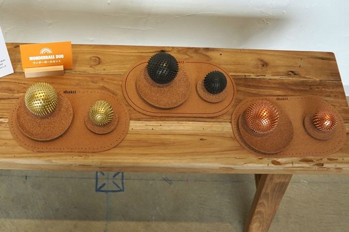 まず目を引いたのは、Shakti独自のスパイク構造を球体に再設計した「ワンダーボール セット」。以前からピンポイントでボールケアができる商品として人気でしたが、今回は従来のオリジナルサイズに加え、顔・手・首まわりなど繊細な部位をピンポイントで刺激しやすいミニサイズがセットで登場しています。