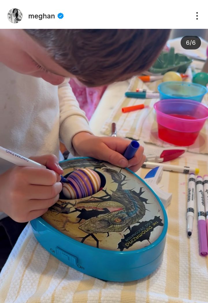 また、メーガン妃自身も、敷地内の鶏小屋でニワトリに餌を与え、卵を探しに行く姿が捉えられている。さらに、アーチー王子とリリベット王女がエッグハントのためカゴを手に広大な庭を元気よく走り回る場面も見られた。