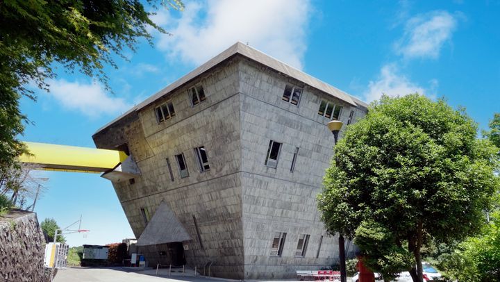 1994年に開館した、作品と建築空間が見事に一体化した美術館。国際的に活躍するアーティストである荒川修作+マドリン・ギンズと岡崎和郎、そして宮脇愛子に、一般の美術館では収集不能な巨大作品をあらかじめ制作依頼し、空間の設計について3組のアーティストと設計者である磯崎が話し合い、美術館として「建築化」した。
