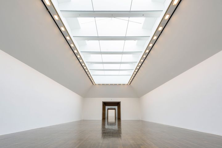 建物内に入ると、御影石をふんだんに使った開放的な大空間が広がる。その長さは約63m。TANGE建築都市設計の設計・監理による約3年間の改修工事を経てふたたび自然光に満たされた「グランドギャラリー」は「横浜美術館」の最も印象的な空間だ。