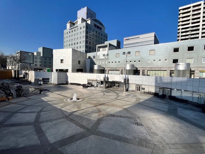 筑波研究学園都市のシンボルとして、1983年に完成。ホテルやコンサートホール、レストラン、オフィスなどが入る複合施設。ビル群の中心には広場(写真)があり、ここではローマのカンピドリオ広場からテーマを引用し、さらに色を反転させた模様を確認することができる。そのサイズが、カンピドリオ広場とまったく同じであることにも注目したい。